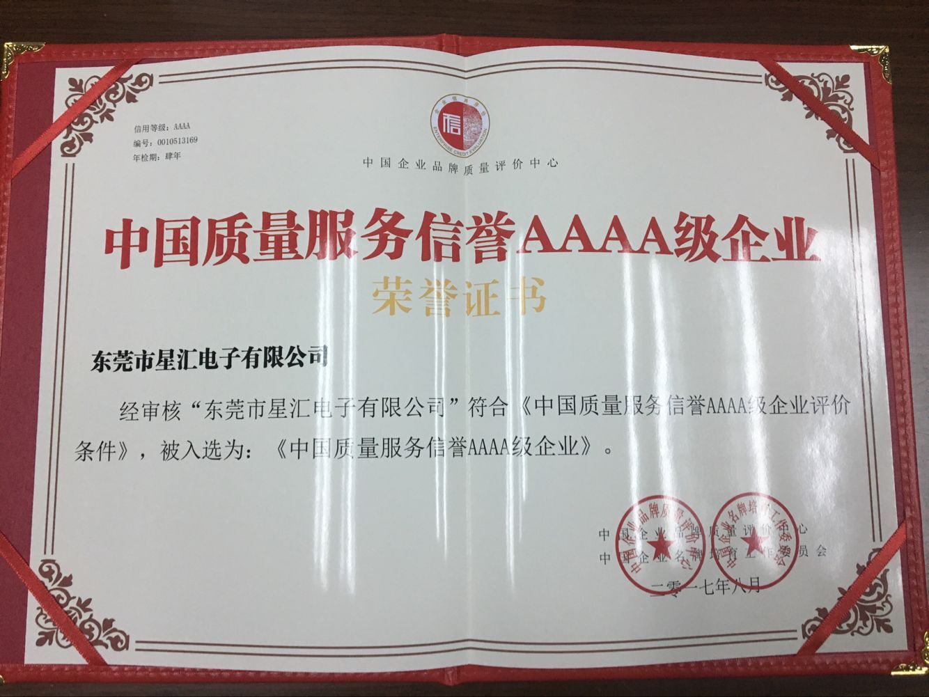 產品名稱:中國質量服務信譽AAAA級企業榮譽